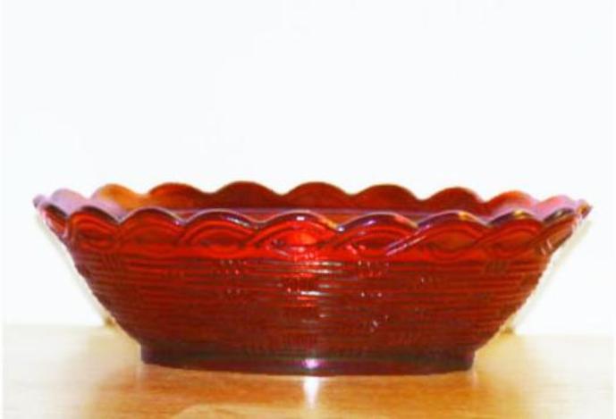 | What visual clues can be used to help determine which, if any of these 3 red and white hens are Fenton? Top hen: 1) The tail of the hen on the top left is not smoothly curved, but instead has indentations, or a scalloped affect, along the rear edge of the tail, with less obvious longer curves along the front edge of the tail as well. All Fenton hen tops have smoothly curved tails with no indentations or scallop affects on either edge. Only Fenton's heavy 8" hen tops with big, round bulging eyes sit on basket woven bases and egg plates. 2) The egg placement, top of tail, wing design, and cowl are also unlike any of the Fenton hen top moulds. The neck does not have the same degree or angle of turn as either of Fenton's 2 sizes of Hen tops and the cowl is barely visible, if at all. The beak is not as pointed as the 5" Fenton hen top but too pointed for the 8" Fenton hen top which would be the only Fenton hen top used on a basket woven style base. 3) Note the details and styling of the "basket woven" base. Fenton's basket woven bases are different from the style of the basket-woven style of base shown in the top photo/ That base has a high profile to the relief design, creating a more 3-D, or raised pattern to the under and over design of the basket weave on the rim and on the sides. The exterior edges of Fenton's basket woven bases have less of a raised profile to the sides and a tighter twist to the rim design. 4) Proportion of the base to the hen top. The proportion of the top to the base appear more top heavy than those of Fenton's hen on nest moulds which are fairly well balanced. ____________________________________________________________ Middle Hen: 1) The hen on nest shown below right has an overall size and style that is closer in form to Fenton's 5" hen on nest #5186. Despite some similarities between hen tops, the base for this 5" hen on nest is very different from any used by Fenton. This base features a beaded rim with a criss-cross design along the sides clearly indicating this hen on nest is also not Fenton. The criss-cross design shown has been used by Westmoreland on several of their hen on nest bases, and Mosser, who bought many WMG moulds when they went out of business continue using them. This hen top is also different from Fenton's 5" hen top. The tip of the tail is more rounded, the degree of turn to the neck, and the overall shape of the head, beak, and cowl differ from Fenton's hen on nest dishes. ____________________________________________________________ Bottom Hen: Fenton hen on nest, ware #5186 MD, produced 1971-72. Milk glass hen on nest with hand painted face, comb and beak. Note the angle of the tail and the type of base used. |