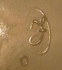 | Different logos were used by Fenton, with each having its own meaning, or reason, for its use. The center of the underside of the base shown on the left is where the logo shown in the photo on the right is placed.the right is placed. |